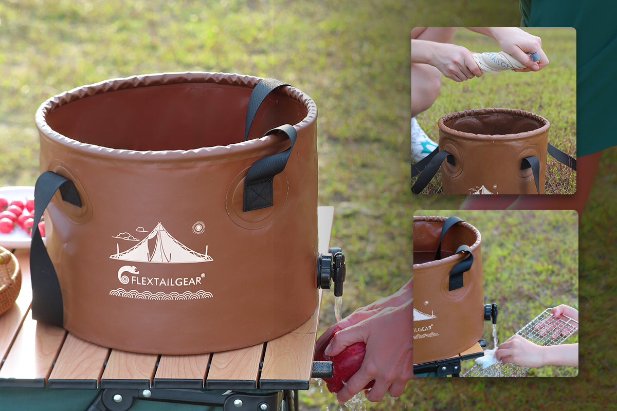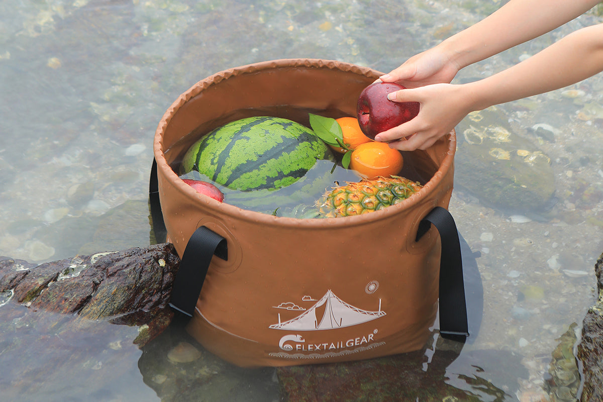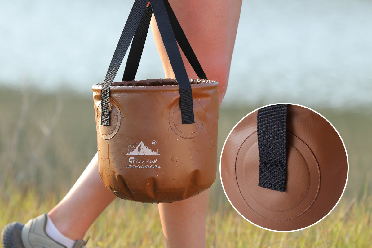 Unsere Outdoor-Falteimer bestehen aus lebensmittelechten Materialien, die ungiftig und ungefährlich sind.