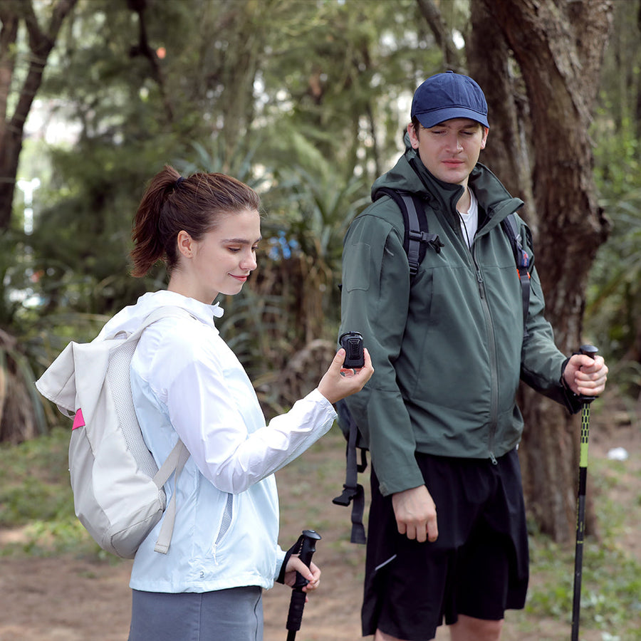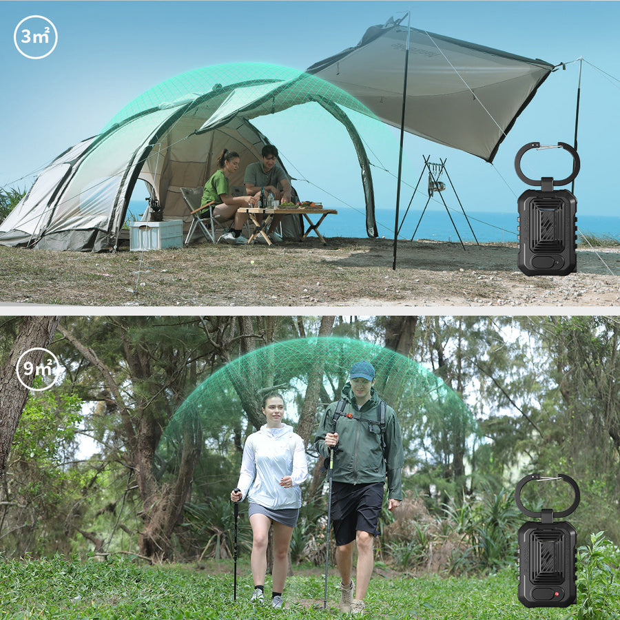 Sie können nicht die ganze Zeit im Freien in einem Zelt bleiben. Was ist, wenn die Reichweite der Mückenabwehr beim Bergsteigen nicht ausreicht? LIGHT REPELLER ist mit 2 Modi ausgestattet – Outdoor-Modus und Camping-Modus. Halten Sie die Einschalttaste 2 Sekunden lang gedrückt, um in den Camping-Modus mit einer Abwehrreichweite von 10 Fuß zu wechseln, wobei die grüne Kontrollleuchte leuchtet. Drücken Sie dann die Einschalttaste erneut, um in den Outdoor-Modus zu wechseln, der den leistungsstarken Mückenschutz mit einer Abwehrreichweite von 30 Fuß aktiviert, die Kontrollleuchte leuchtet rot. Drücken Sie die Einschalttaste erneut, um LIGHT REPELLER auszuschalten.