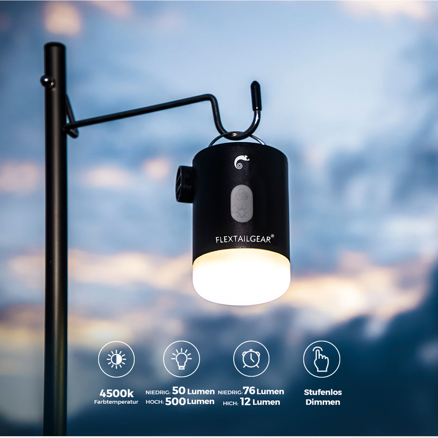 MAX PUMP2 PRO bietet stufenloses Dimmen, um Ihren unterschiedlichen Lichtanforderungen besser gerecht zu werden. Mit 500 Lumen auf höchster Stufe hält es bei hoher Helligkeit bis zu 12 Stunden und bei niedriger Helligkeit (50 Lumen) bis zu 76 Stunden.