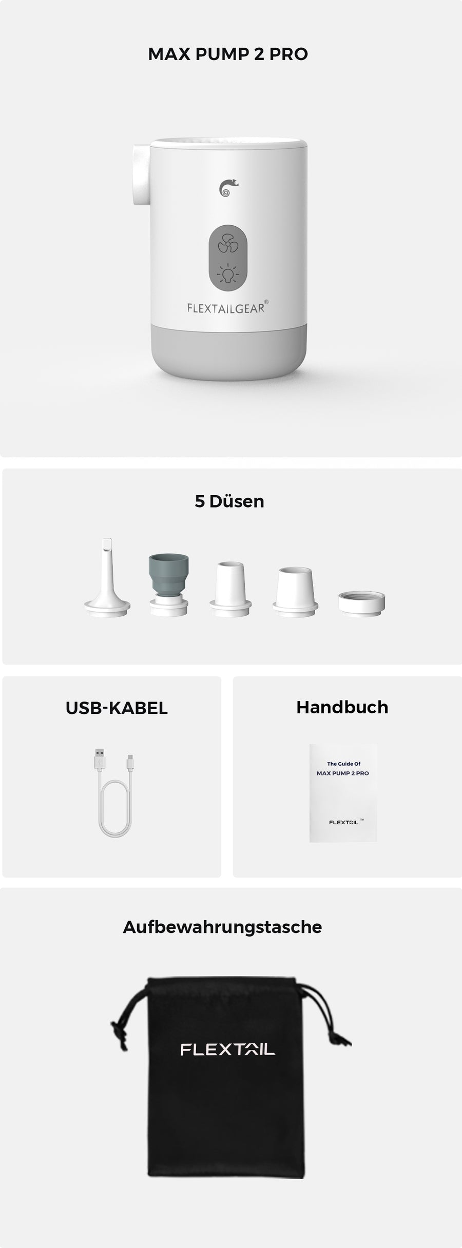 Hergestellt aus hochwertigem ABS-Gehäuse und PC-Lampenschirmmaterial, um Haltbarkeit und Zuverlässigkeit zu gewährleisten. IP55 staub- und wasserbeständig bis mäßigen Regen und Spritzwasser, für verschiedene Außenumgebungen geeignet. Es ist ein zuverlässiger Begleiter bei jedem Abenteuer, das Sie erleben. MAX PUMP2 PRO kann ein Feuer machen, indem es Luft bläst und Sauerstoff schneller, sicherer und effizienter liefert.