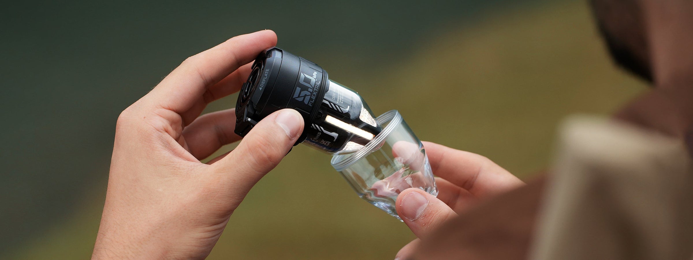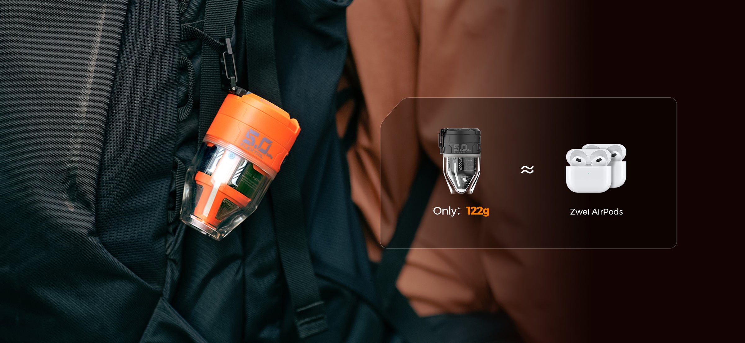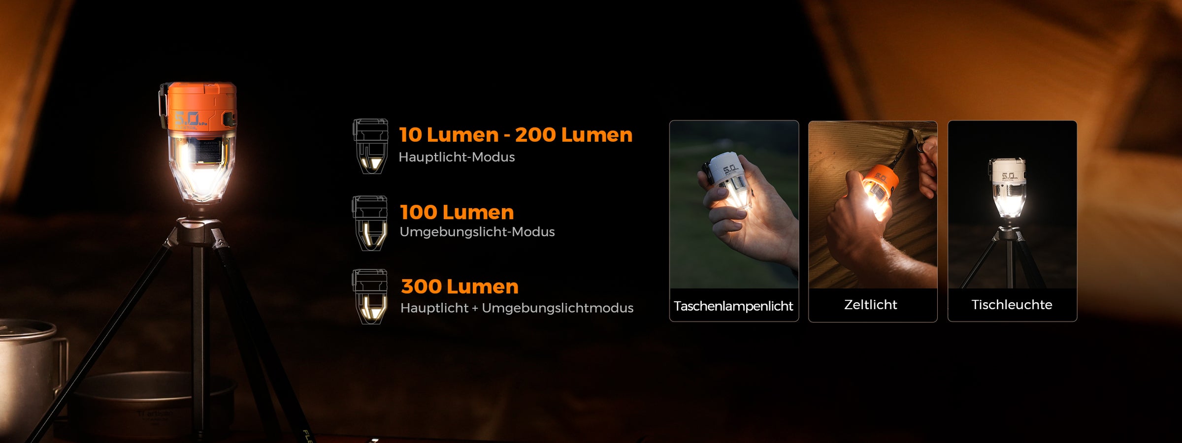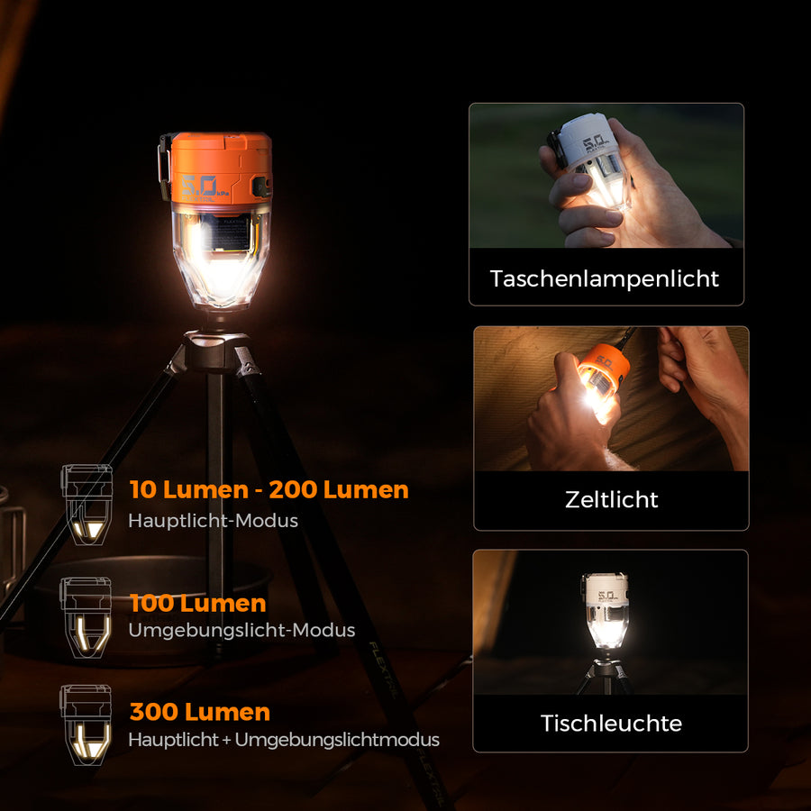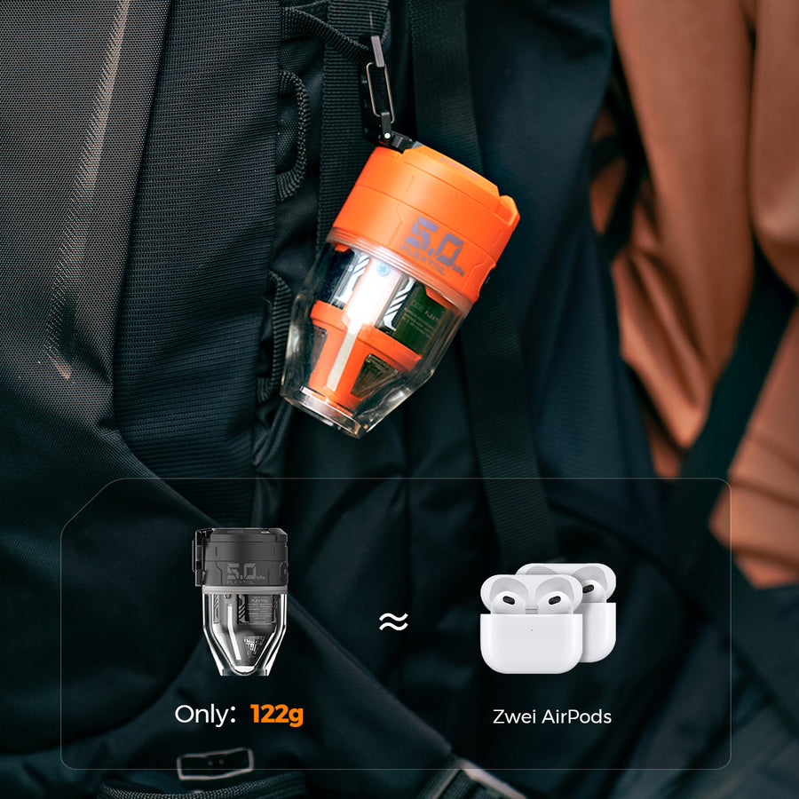 MAX PUMP 3 verfügt über ein einzigartiges Lichtdesign mit einem vollständig transparenten Lampenschirm, der Ihrem Outdoor-Erlebnis einen Hauch moderner Technologie verleiht. Das 2/3-Flächen-Leuchtdesign, das für eine größere Lichtstreuung sorgt hat 3 Helligkeitsstufen, und bis zu 11 Stunden Batterielebensdauer.