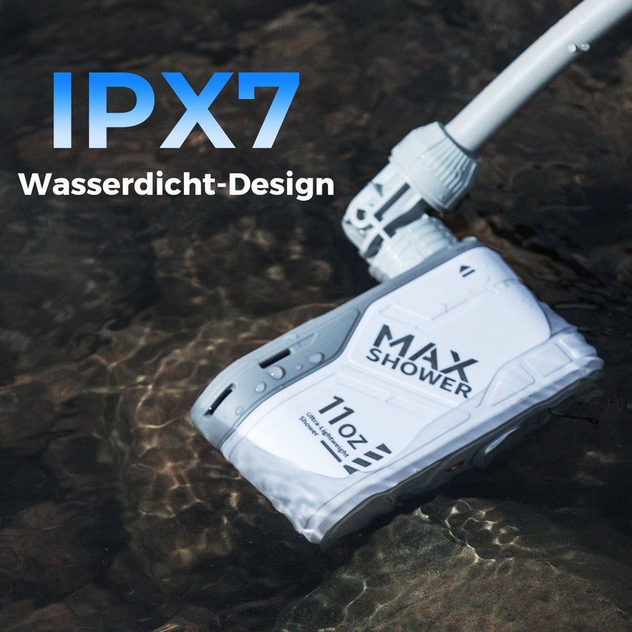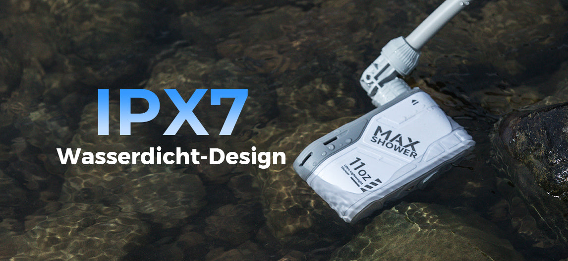 Das wasserdichte IPX7-Design sorgt nicht nur für ein sicheres Gefühl bei der Verwendung, sondern gewährleistet auch die Langlebigkeit Ihres Duschkopfs. Er ist so konstruiert, dass er dem Kontakt mit Wasser standhält, sodass Sie unzählige Duschen genießen können, ohne sich um Verschleiß sorgen zu müssen.