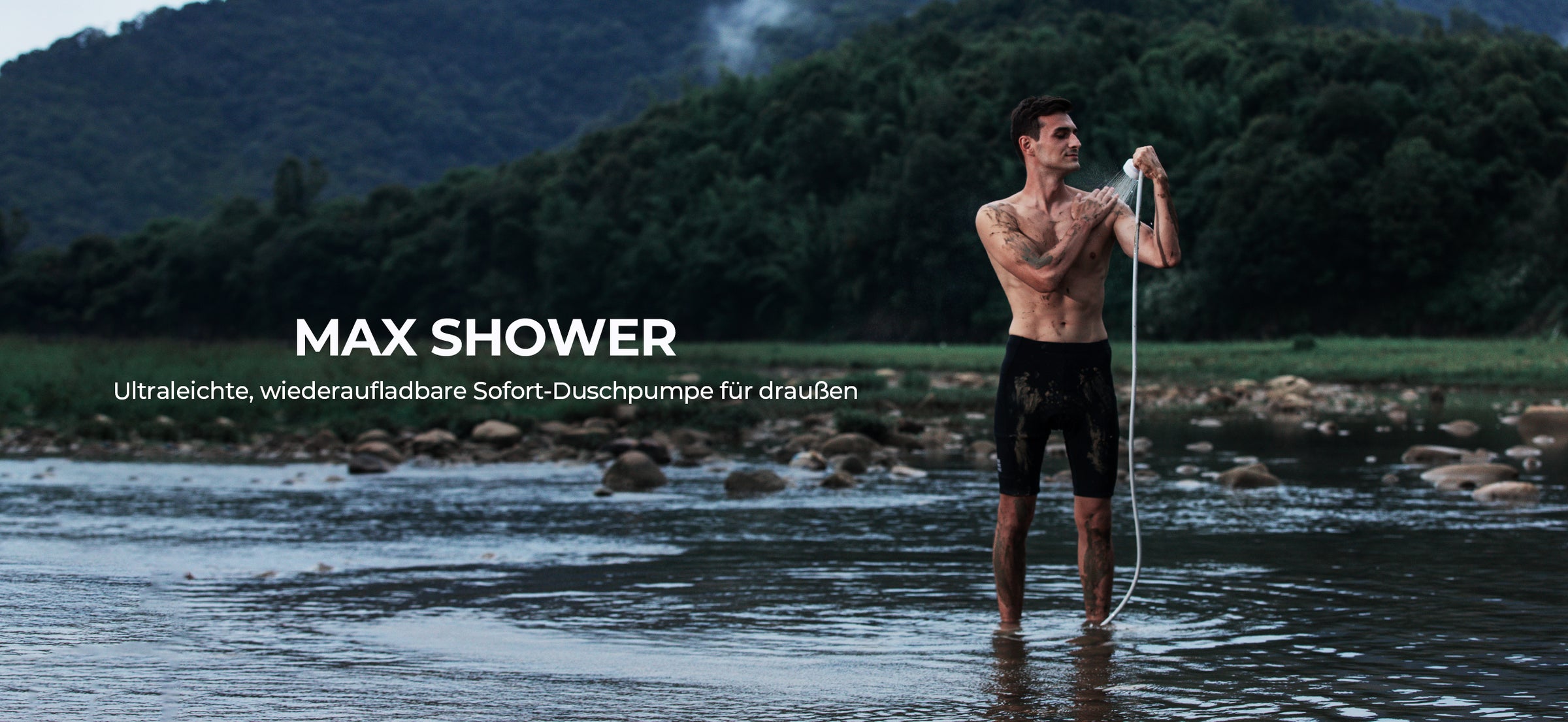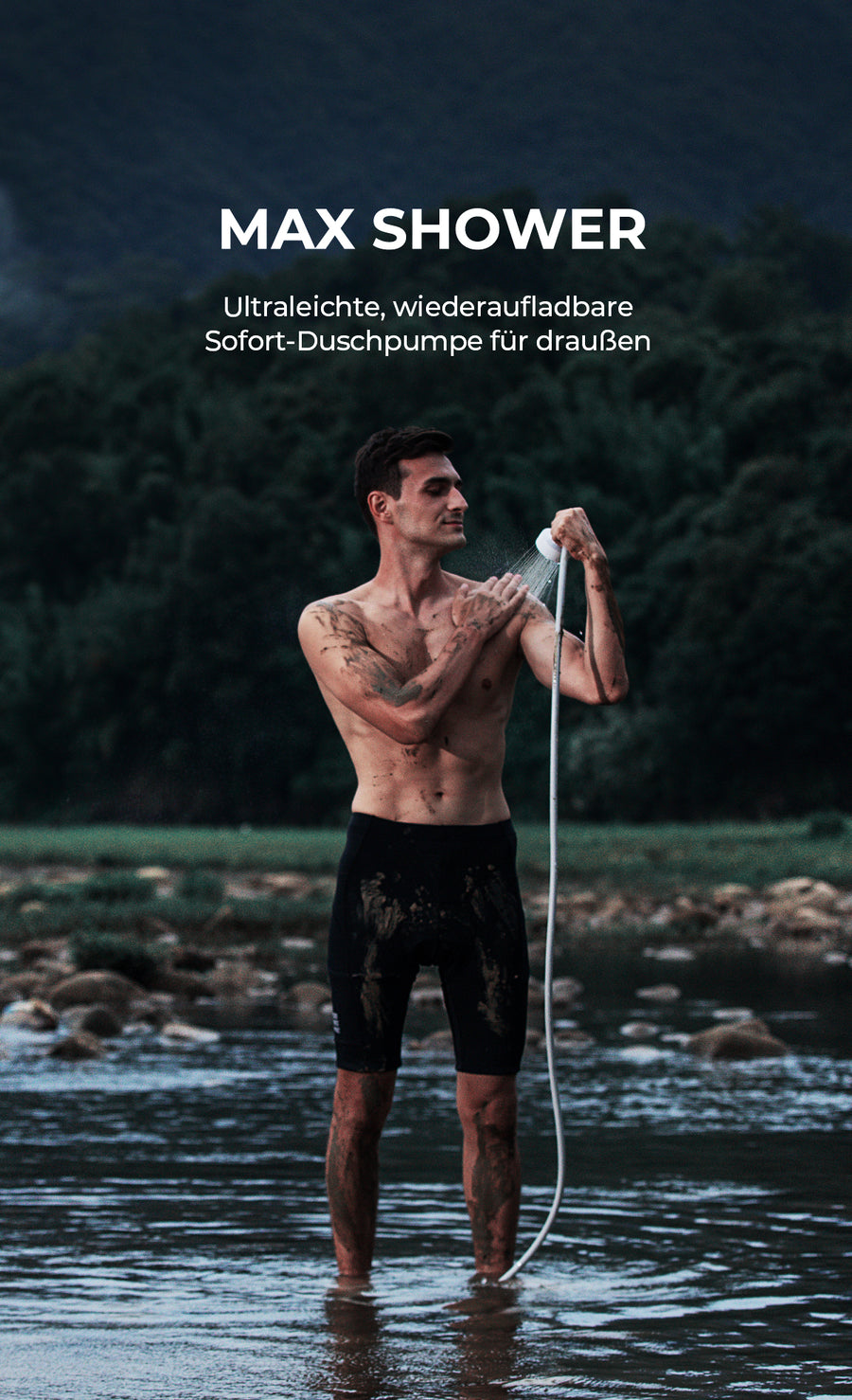 Die FLEXTAIL MAX SHOWER wiegt nur 310 g. Sein kompaktes und tragbares Design sorgt dafür, dass Sie die Dusche bei all Ihren Outdoor-Abenteuern mühelos mitnehmen können.