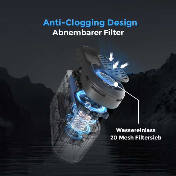 MAX SHOWER verändert die Spielregeln mit seinem bahnbrechenden Wasseransaugsystem nach oben. Im Gegensatz zu herkömmlichen Pumpen, die leicht Verunreinigungen von unten ansaugen, können Sie sich dank des Wasseransaugsystems nach oben darauf verlassen, dass Ihre Pumpe frei von Verstopfungen ist. Das eingebaute Filtersieb besteht aus hochqualitativem 20-Maschen-Edelstahl 304, der Säure- und Laugenkorrosion sowie Rost widersteht. Das abnehmbare Filtersieb ist außerdem leicht zu reinigen, was die Lebensdauer effektiv verlängert. Mit einer beeindruckenden Batteriekapazität von 18,5 Wattstunden (Wh) ist dieser Duschkopf Ihr zuverlässiger Begleiter für eine Dusche ohne Unterbrechungen.