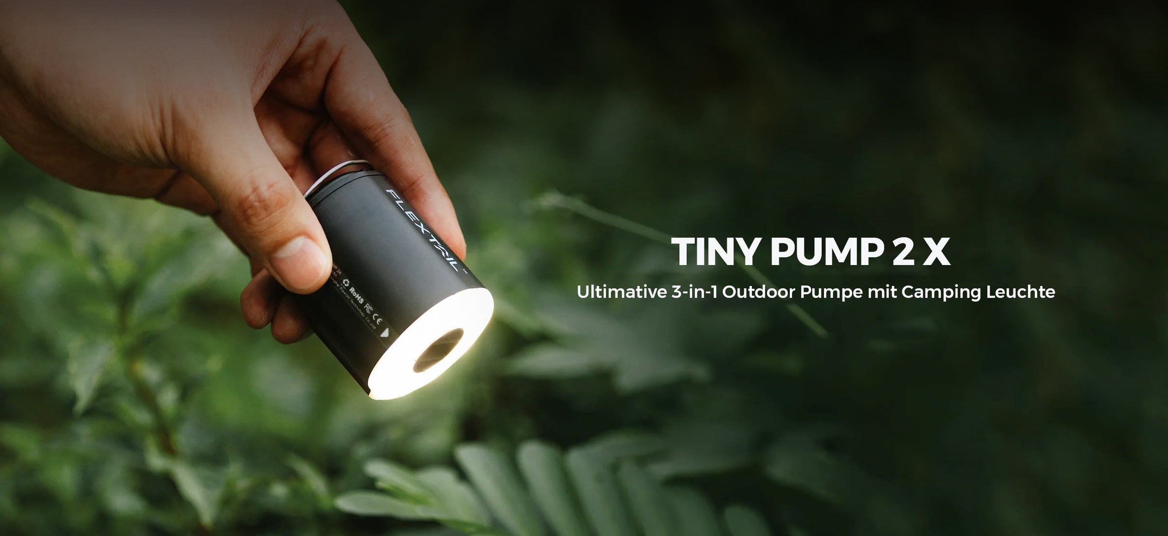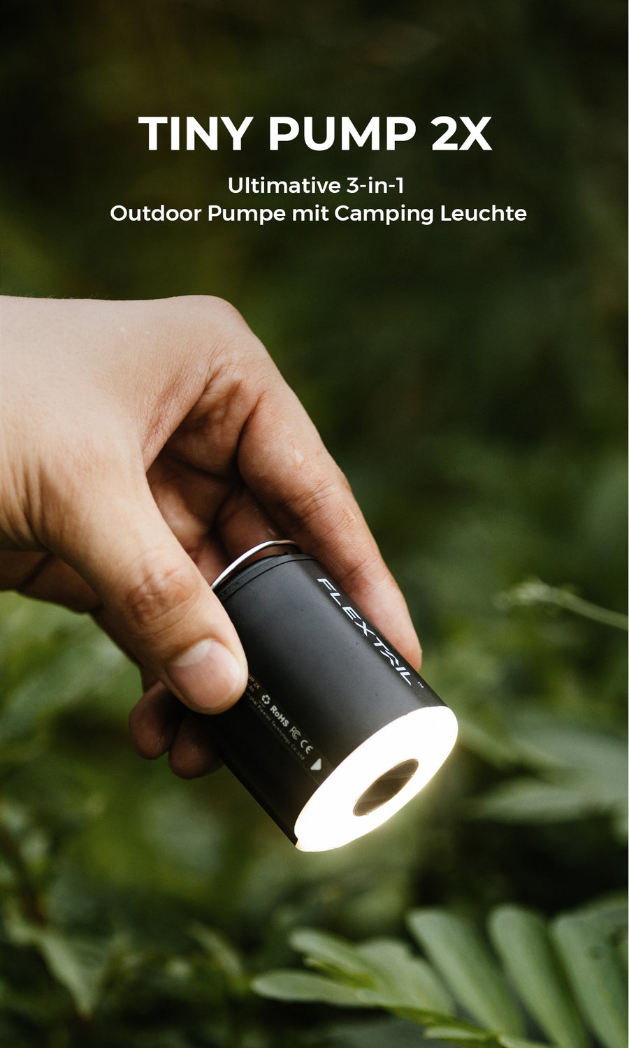 Die kleinste wasserdichte 3-in-1-Pumpe für den Außenbereich. Diese taschengroße Pumpe misst nur 45 x 46 x 59 mm und wiegt 100g. Stecken Sie sie in Ihre Tasche und entdecken Sie eine Welt voller Möglichkeiten: Sie dient als Luftpumpe, Vakuumpumpe und Campinglaterne in einem. Mit TINY PUMP 2X ist große Vielseitigkeit und Nutzen bei Outdoor-Abenteuern immer in Reichweite.