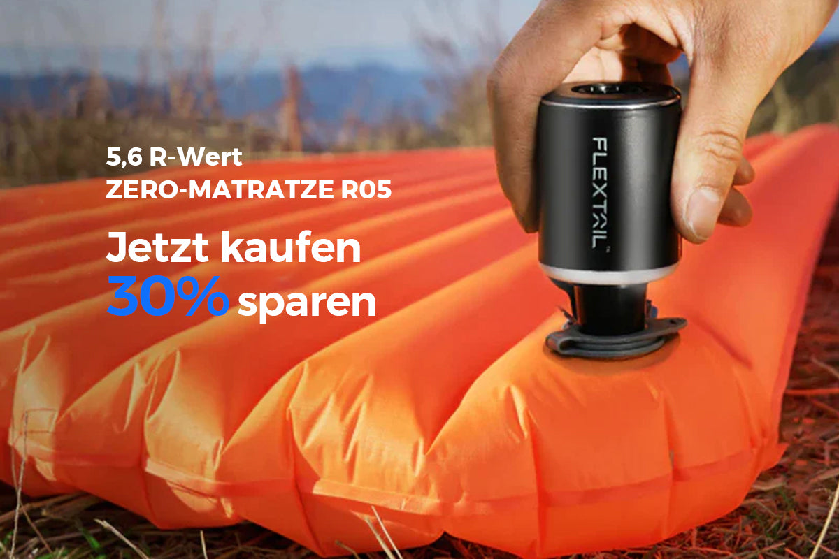 Ausgestattet mit der neuesten AIR VORTECH™-Technologie kann TINY PUMP 2X einen Luftdruck von bis zu 4 kPa und einen Luftstrom von 180 l/min erreichen und so verschiedene aufblasbare Produkte schnell aufblasen. Geeignet für FLEXTAIL 5.6 R-Wert ZERO MATRATZE R05. Fügen Sie jetzt ZERO MATRATZE R05 zu Ihrem Warenkorb hinzu, um 30 % zu sparen.