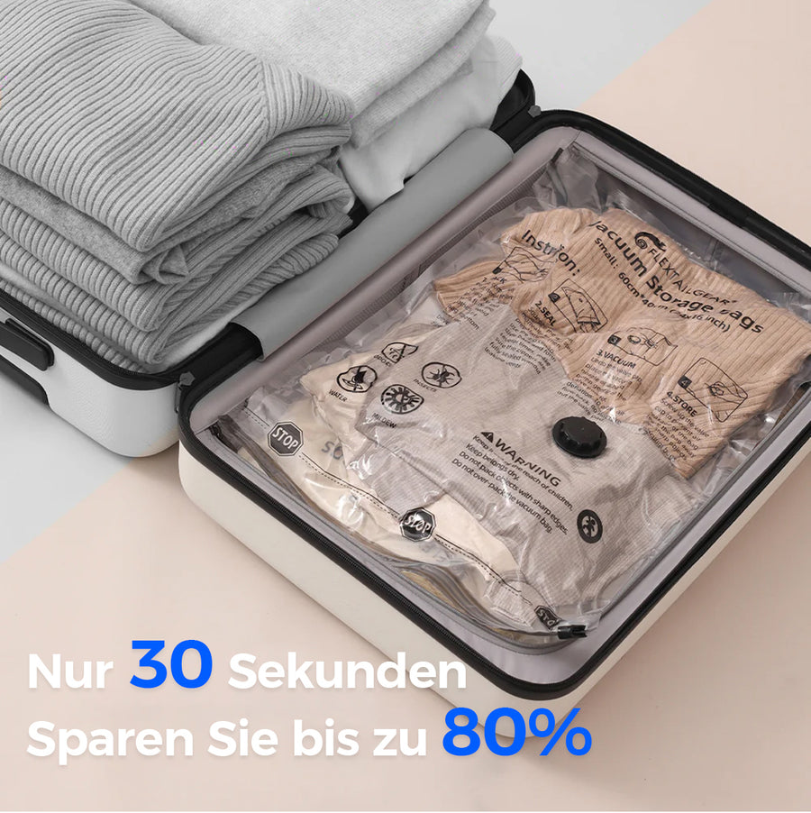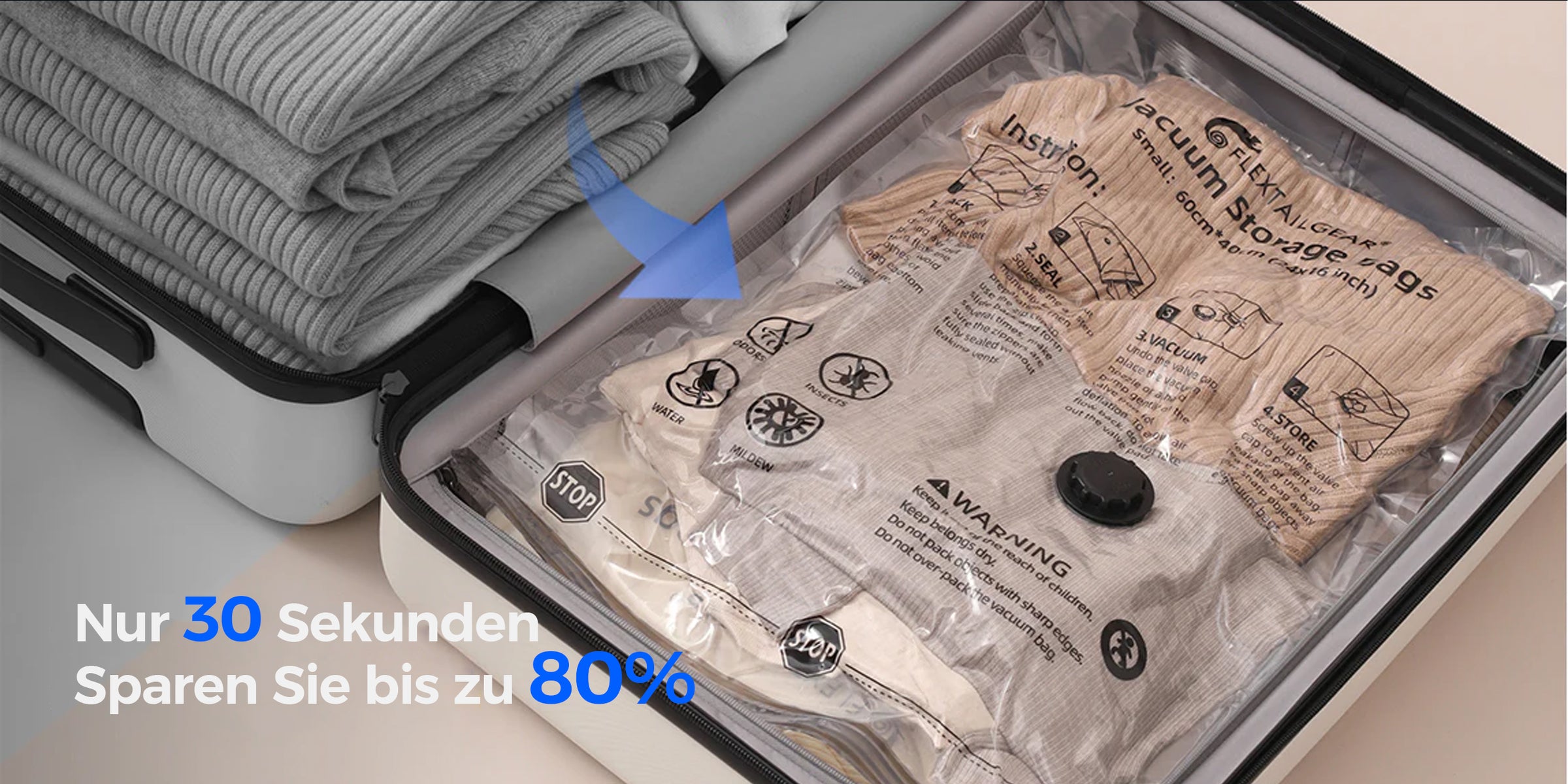 TINY PUMP 2X ist nicht nur für den Einsatz im Freien geeignet, sondern auch perfekt für den Einsatz im Haushalt. Es kann mit einem Vakuumbeutel verwendet werden, um Ersatzbettdecken und Kleidung für die Nebensaison aufzubewahren. Es saugt schnell die gesamte überschüssige Luft im Vakuumbeutel auf. So können Sie bis zu 80 % wertvollen Lagerraum zurückgewinnen.